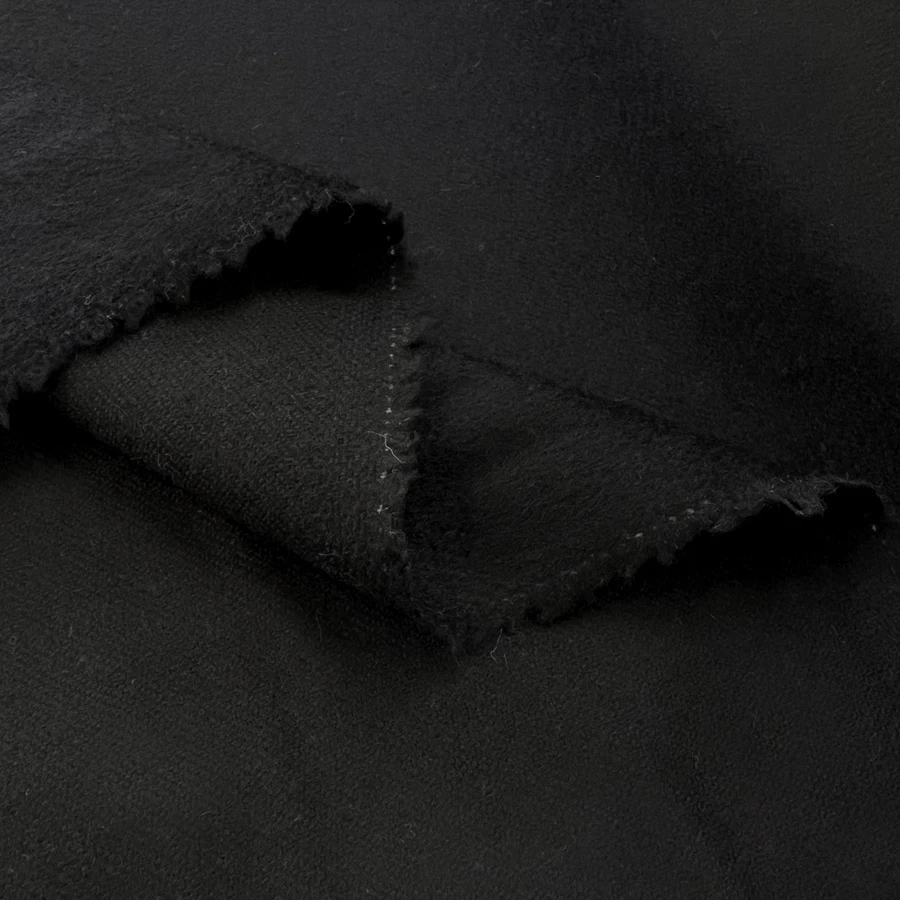Our 100% cashmere jacketing fabric comes to us from Italy. This special cloth has an elegant and timeless black hue which exudes sophistication and versatility; a neutral canvas that effortlessly complements a variety of styles.
