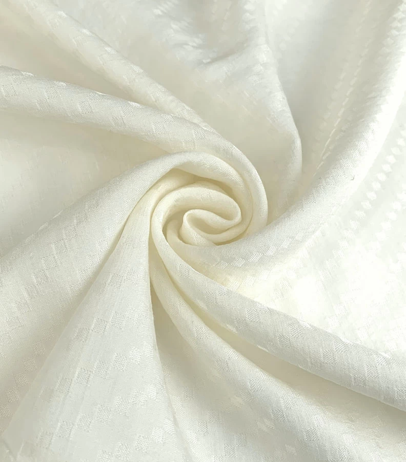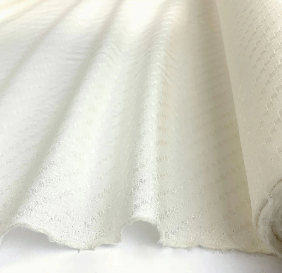 | Wool and silk blouse fabric in cream. This has a delicate geometric weave, which is utterly divine. | |