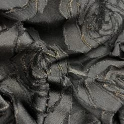 Our black lace fabric features embroidered velvet flowers with copper highlights that are ideal for dressmaking!