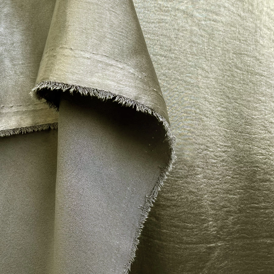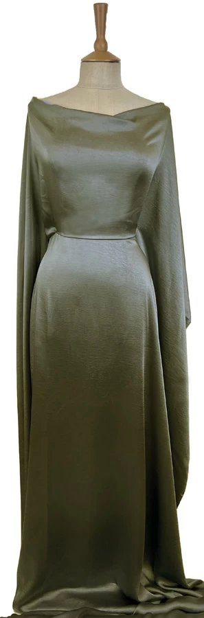 This 147cm wide polyester satin stretch fabric in olive green is truly a delight for those seeking to create garments that are both sophisticated and comfortable.
