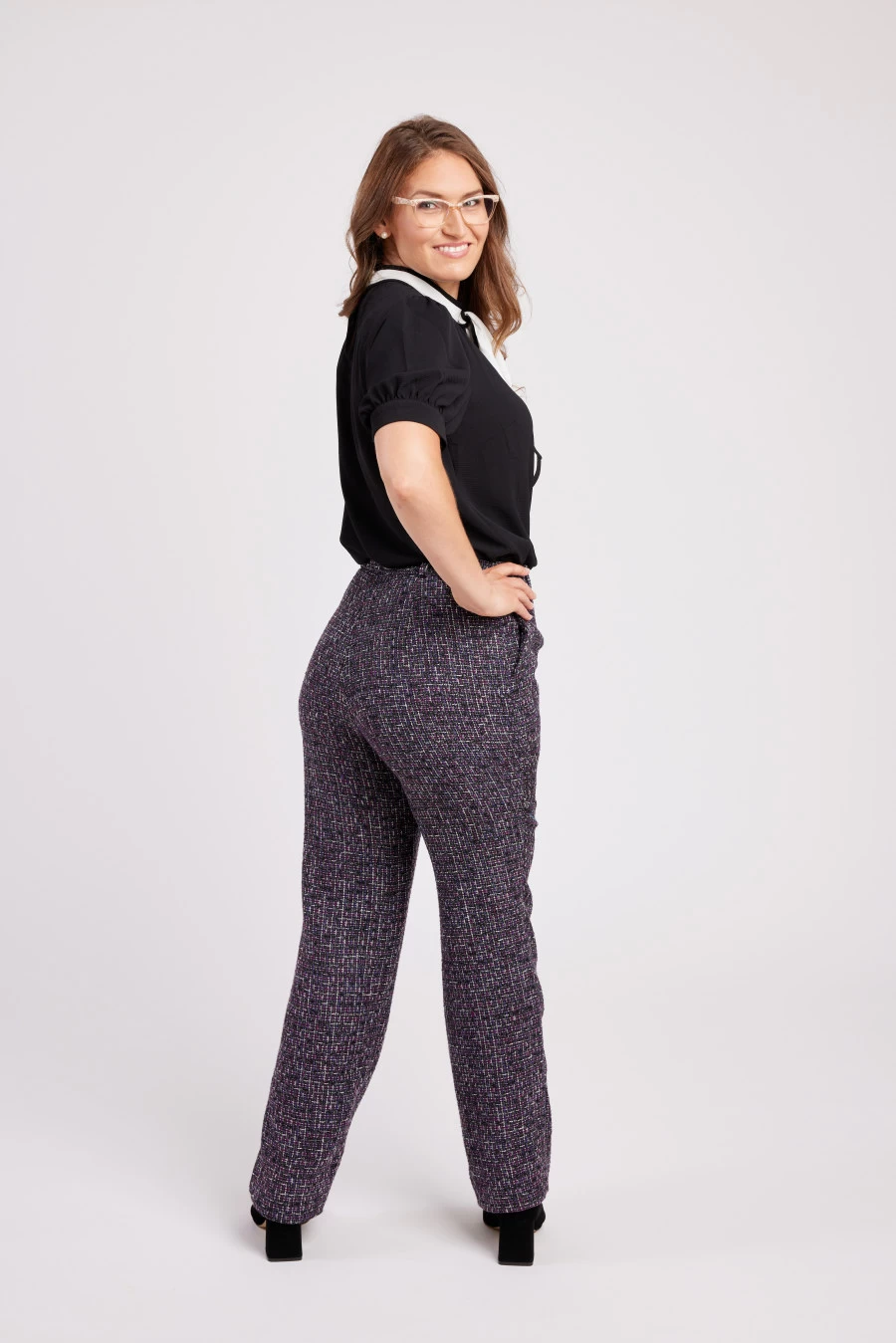 The Meriam Trouser pattern boasts classic trouser features such as a zip fly with a hidden closure, front slash pockets, straight legs, and optional back welt pockets. What sets them apart is the flex waistband, which gently expands by 3-4″ when you sit down for ultimate comfort. Plus, the option of a pre-done full bum adjustment piece ensures a perfect fit every time.