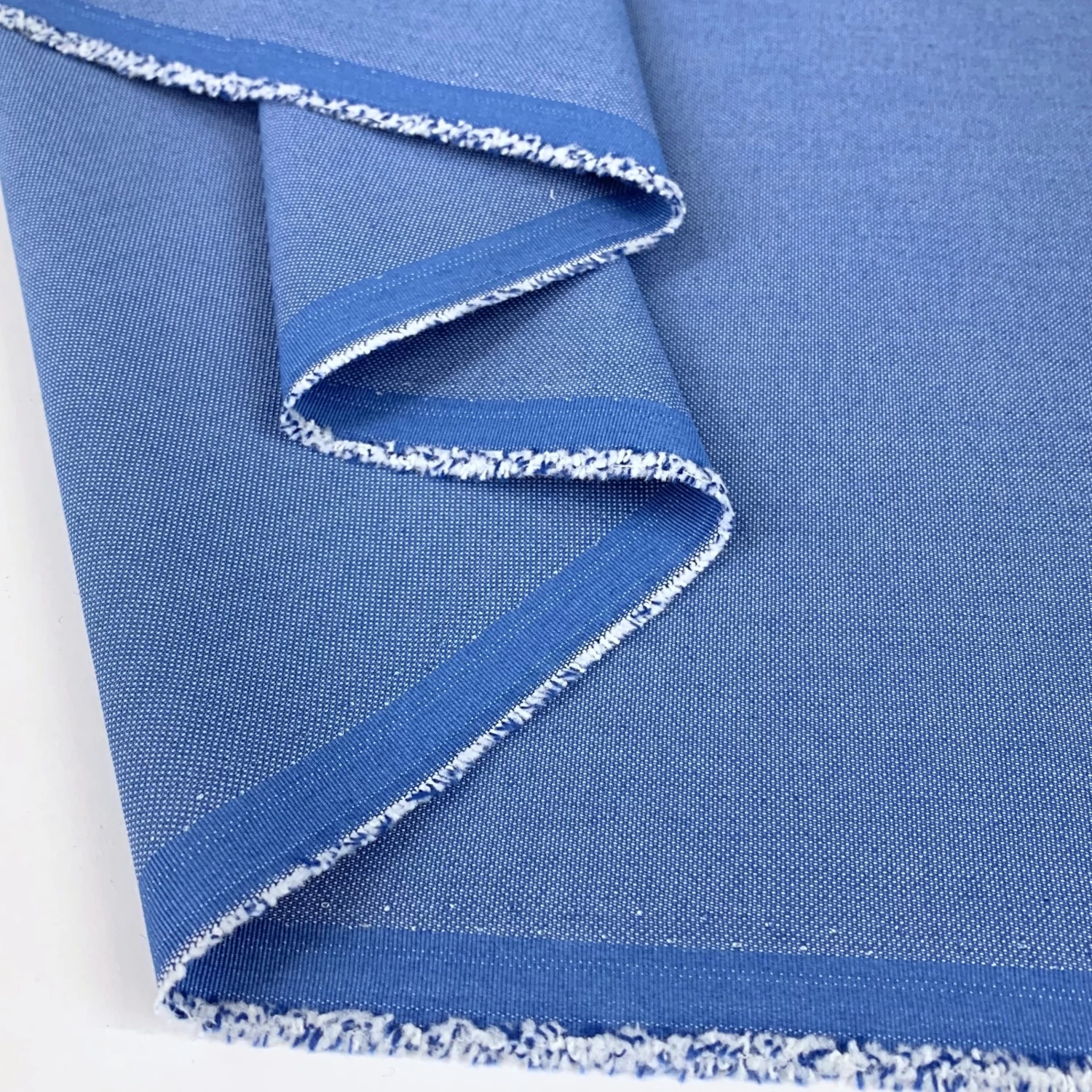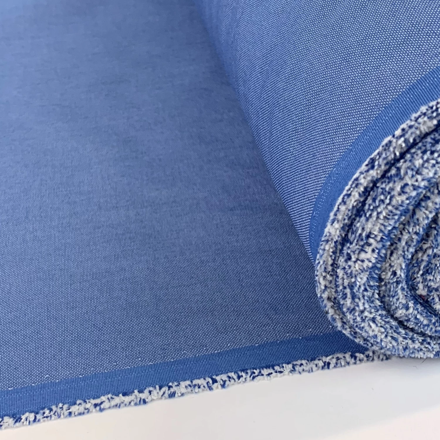 | Woven stretch chino trouser fabric in a mix of yarns so it reduces creasing cotton rich with polyester, this fabric will be cool to wear & easy to care for as the polyester reduces drying time and ironing time. This is almost a chambray with it’s mix of bright blue and white yarns it is a unique cloth. The small amount elastane just gives you that little bit of movement. This is a soft fabric and can be made into trousers, jackets, shorts, skirts & jackets. | |