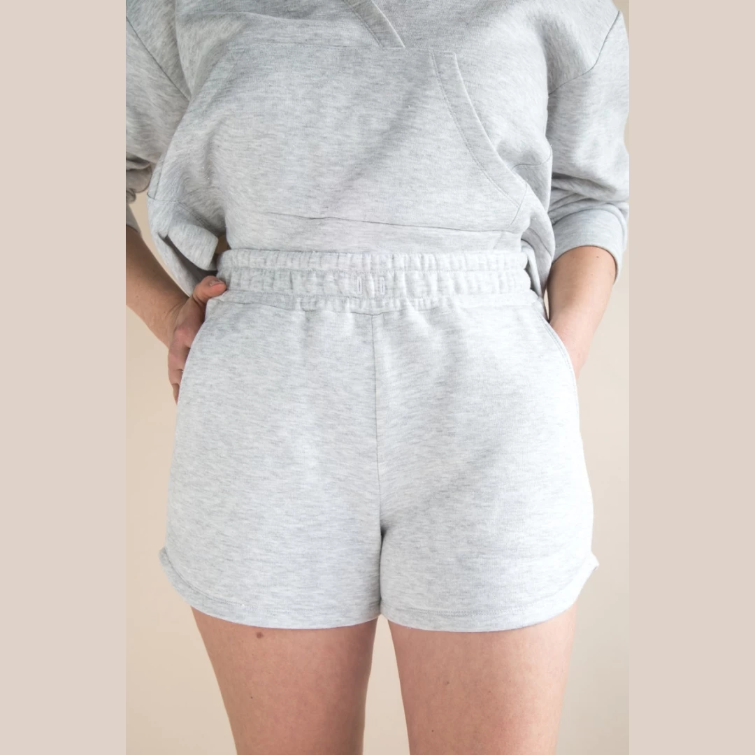 View A offers a relaxed fit with the option of a drawstring waist and two different ankle finishes: a fabric cuff or gathered elastic hem. View B is a pair of shorts with a delicately scalloped hemline. Both options can be enhanced with optional back pockets.