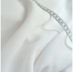 | This is a 150cm wide, 100% polyester, plain weave, linen look suiting in white. I say linen look not to create a false impression but to tell you the yarns are slightly thicker than normal and there is an element of slubishness in some of the yarn. Stay Cool. | |