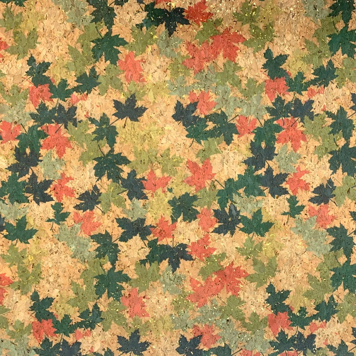 | Cork fabric is wonderfully soft to the touch, strong, durable & easy to sew with. This one is in a beautiful pink and green autumn leaf print with a metallic fleck underneath. It’s the ideal fabric for bag & purse making, or any craft project you may consider using leather for, a lot more versatile than it first may seem! It’s even Sustainable & environmentally friendly too! Cork can be used for a wide range of projects from bags through to place mats and even garments. | |