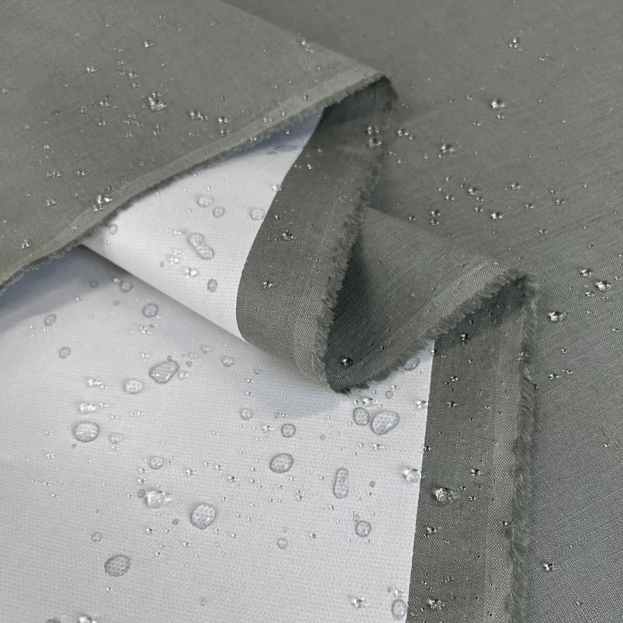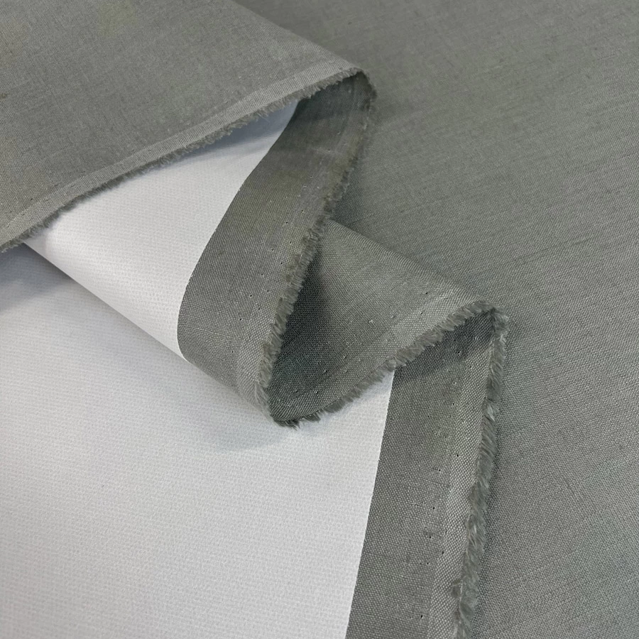 Our fabric captures the classic allure of a slate grey hue, offering a sophisticated appearance that suits a wide range of fashion styles. Thanks to its PU backing, this linen fabric provides excellent water resistance, ensuring you stay dry and comfortable in unpredictable weather.