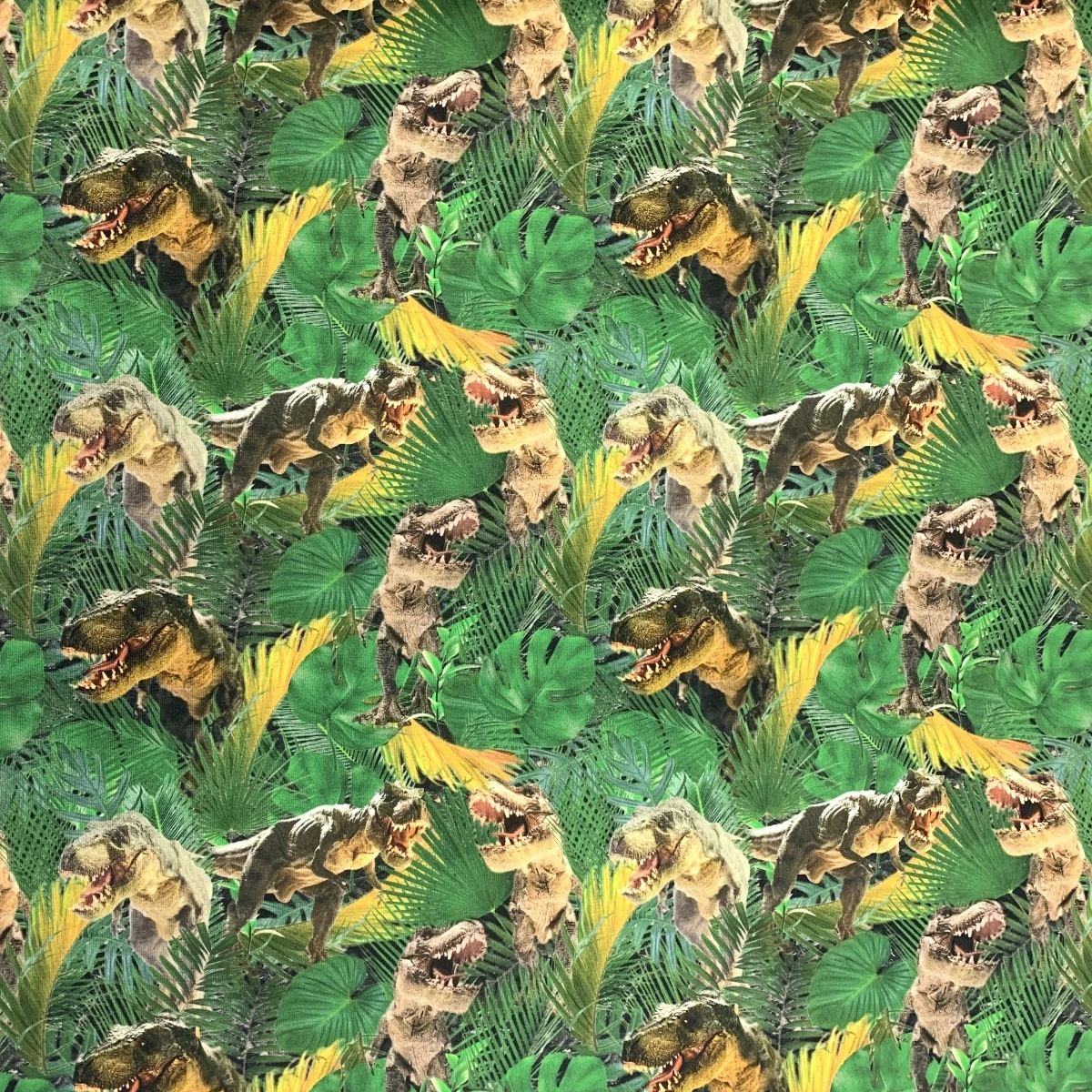 | Digitally printed 95% Cotton / 5% Elastane French Terry jersey fabric with a looped back. This one comes in a lovely leaf and dinosaur print. Great fabric for making into loungewear, comfortable joggers and hoodies. The elastane helps garments keep their shape so no baggy knees. Great for lazy days and ideal for travelling in. Approx 150cm wide | |