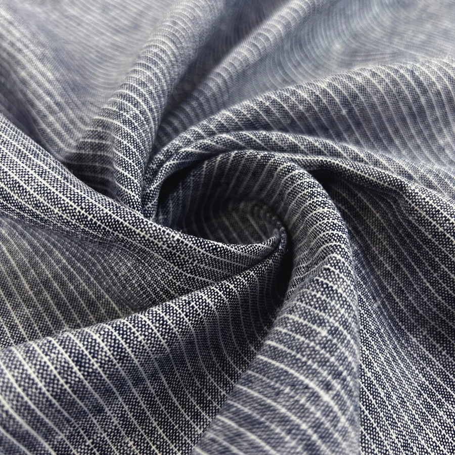 Featuring a indigo blue hue and contrasting white pin stripe, this cloth has multi-generational appeal. Hardwearing and fun for kids clothing and lightweight and breathable for holiday attire.