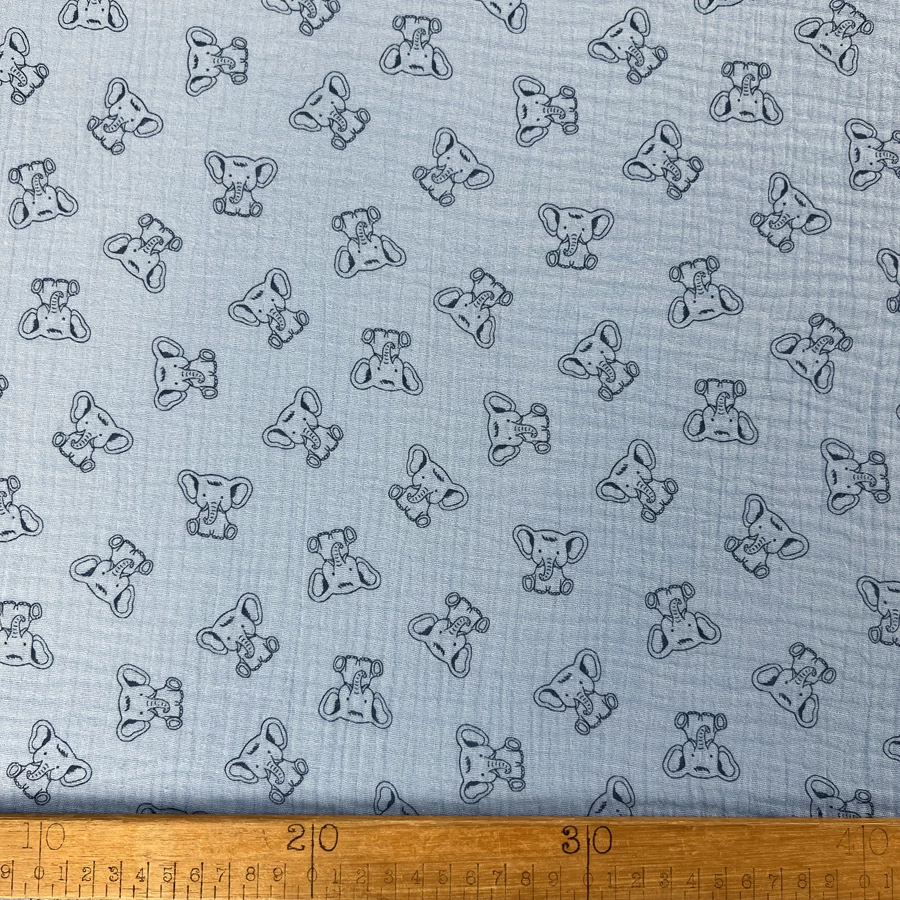 This super cute baby elephant print fabric is made from 100% cotton double gauze.