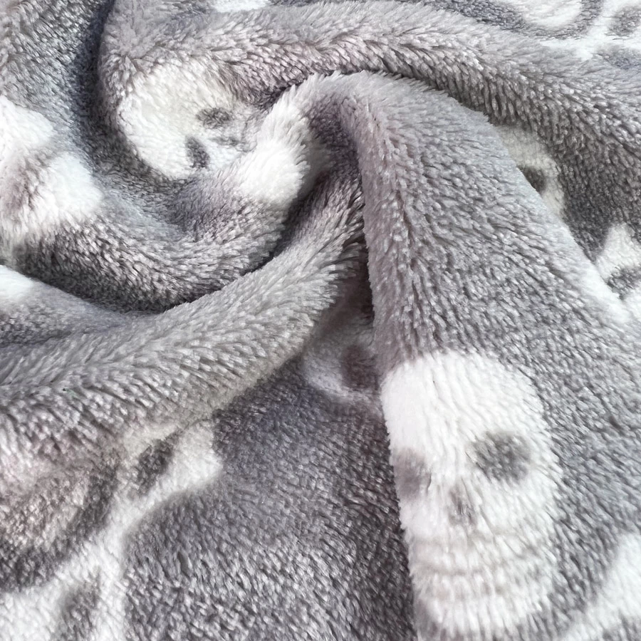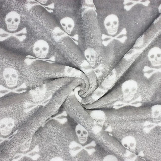 Get cosy with this playful double-sided printed fleece, measuring 147cm in width. Featuring a grey background with a fun skull and crossbones design in white, this fleece is perfect for creating warm loungewear, kids’ pyjamas, dressing gowns, home textiles, and soft toys.