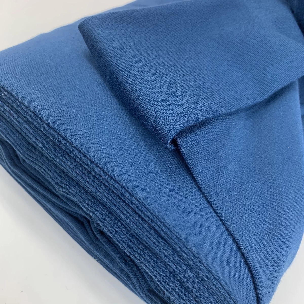 | Plain dark air force 95% Cotton 5% Elastane French Terry jersey fabric with a looped-back, so has good stretch and recovery. If the weight helps you it is 290g sq/m 10oz sq/m but in real terms this is a great jersey material for sweatshirts, joggers, dresses and leggings. It is OEKOTex® standard 100. This means that it has been rub tested, dye tested to this standard and is a superb quality jersey. | |
