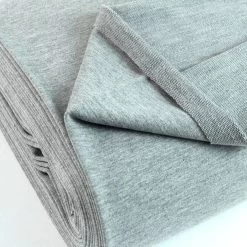 Plain silver marl French Terry jersey fabric with a looped back. It is 95% Cotton, 5% Elastane (lycra) so has good stretch and recovery. If the weight helps you it is 230gsm 10oz sq/m but in real terms this is a great jersey material for sweatshirts, joggers, dresses and leggings.