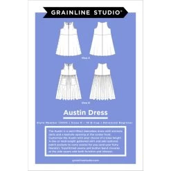 Customise your Austin dress with your preferred skirt length – opt for a knee-length A-line for a classic look, or go for a midi-length gathered skirt for a touch of whimsy. For added convenience and a playful twist, consider including optional patch pockets.