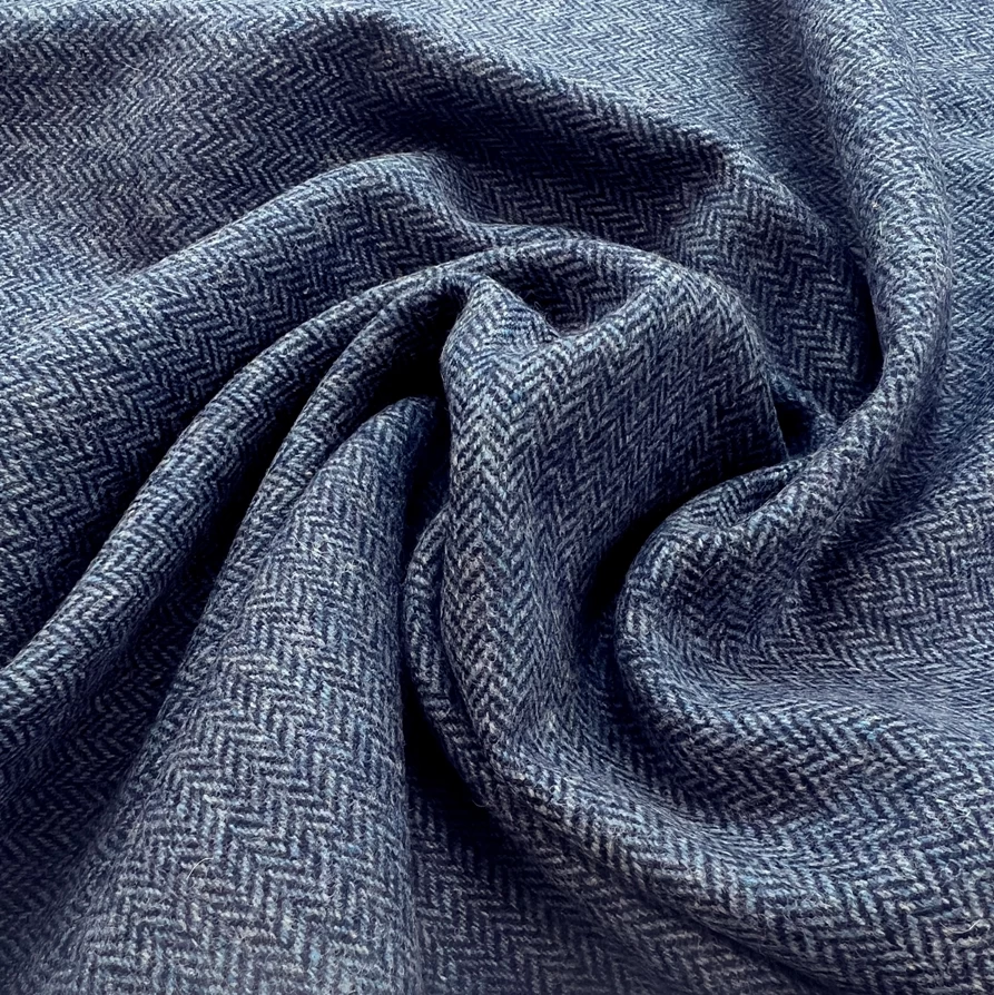 Introducing our premium quality 156cm wide super soft mid rise herringbone weave wool suiting in blue, proudly made in Yorkshire.