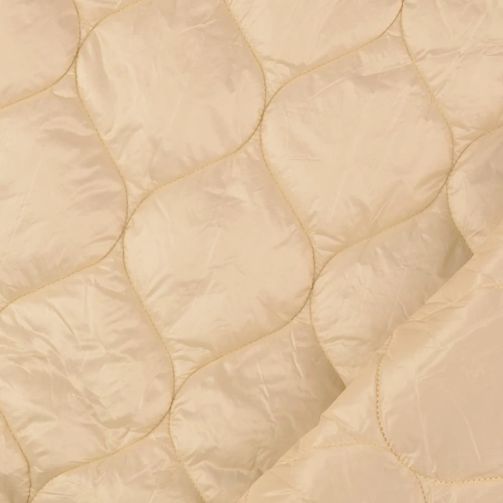 Stay warm and stylish this season with this cream quilted wind-resistant coating fabric, featuring an onion weave design and 2oz wadding, it is the perfect choice for crafting padded jackets, gilets, and unique bags.