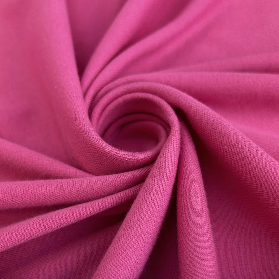 Fabulous 150cm wide cotton interlock jersey fabric in pink, proudly knitted in the UK. This mid weight fabric is the ideal choice for t-shirts, tops, underwear, and nightwear, offering endless versatility.