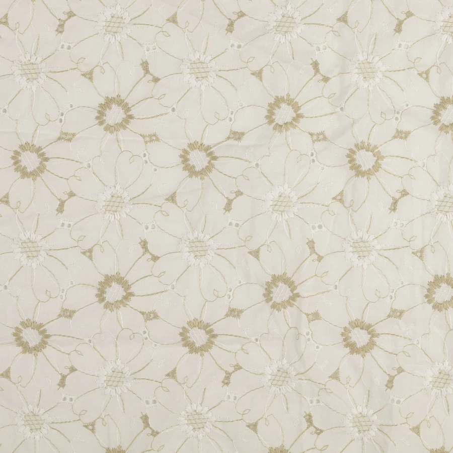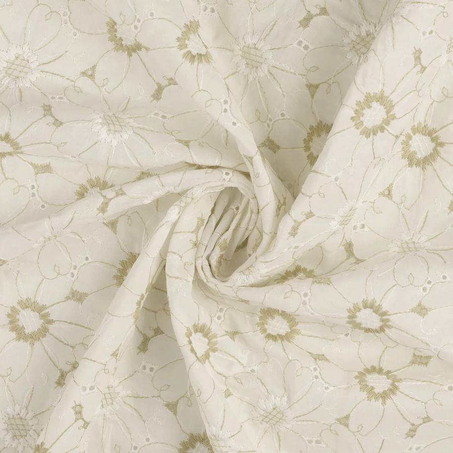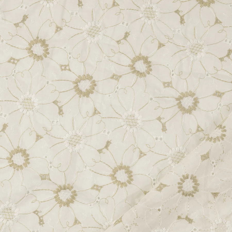 Our intricately woven floral broderie anglaise fabric is made from cotton and polyester, perfect for blouses and dresses!