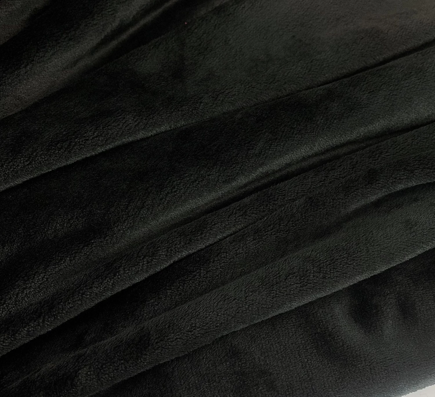Luscious soft fur fleece for hoodies, and sweaters. This black polyester cuddle fleece is so soft it literally just melts in your hands. It is the perfect fabric for blankets too. |