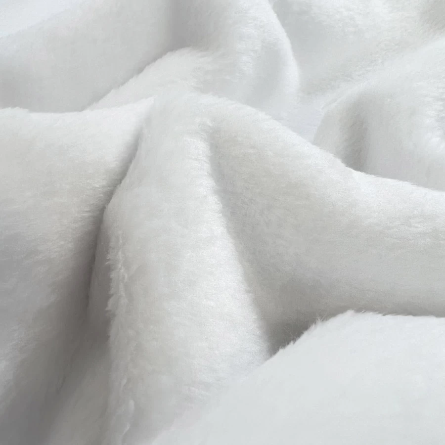 Super soft fleece fur fabric in white, made from 100% polyester; perfect for loungewear, blankets and sweaters! This cloth feels lovely and cuddly against your skin; it’s nice and warm and would make the snuggest housecoat! Available in 6 different colour ways – White, Navy, Silver, Ochre, Black and Rose. |