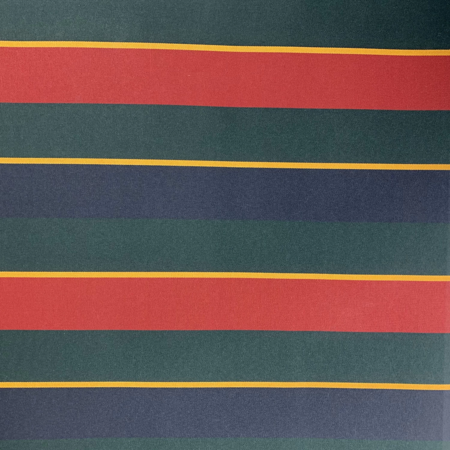 At approximately 270gsm in weight, this fabric has a sturdy yet comfortable feel, providing a perfect balance of strength and comfort for your outdoor seating and décor. The red, green, navy and yellow/gold stripe pattern adds a touch of style and sophistication to any outdoor space, making it a great choice for use in a variety of settings.