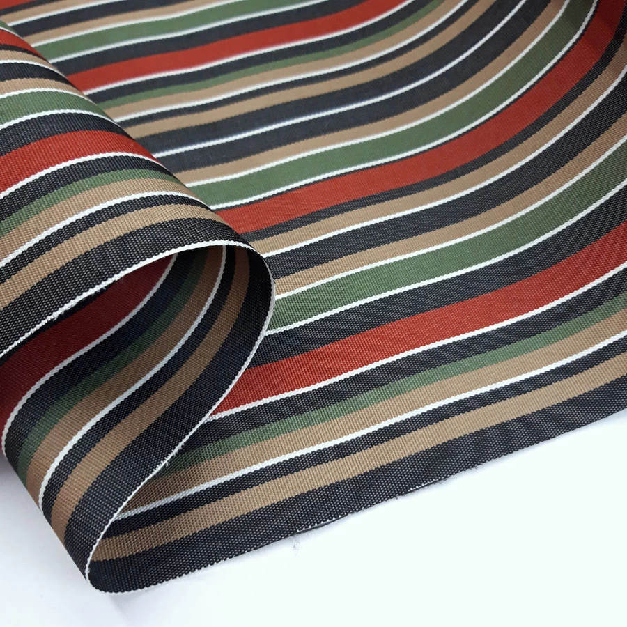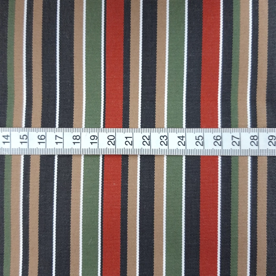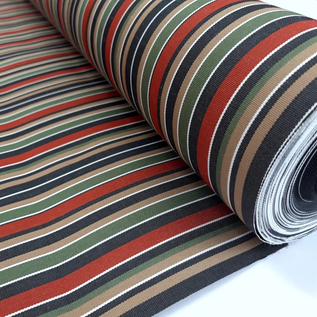 At approximately 270gsm in weight, this fabric has a sturdy yet comfortable feel, providing a perfect balance of strength and comfort for your outdoor seating and décor. The red, green, navy and camel stripe pattern adds a touch of style and sophistication to any outdoor space, making it a great choice for use in a variety of settings.
