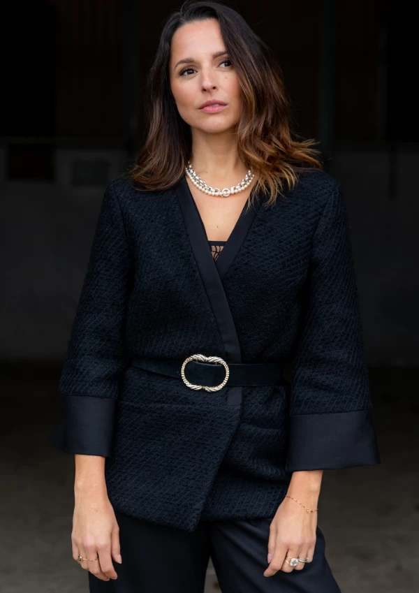 The Sable jacket combines a straight cut with kimono-style sleeves and collar, adding a touch of blazer sophistication. Its timeless chic, comfort, and versatility make it an ideal choice. Fully lined for impeccable quality, Sable also features strategically placed yokes that allow for various jacket interÂpreÂtations. It serves as an excellent introduction to sewing lined jackets.
