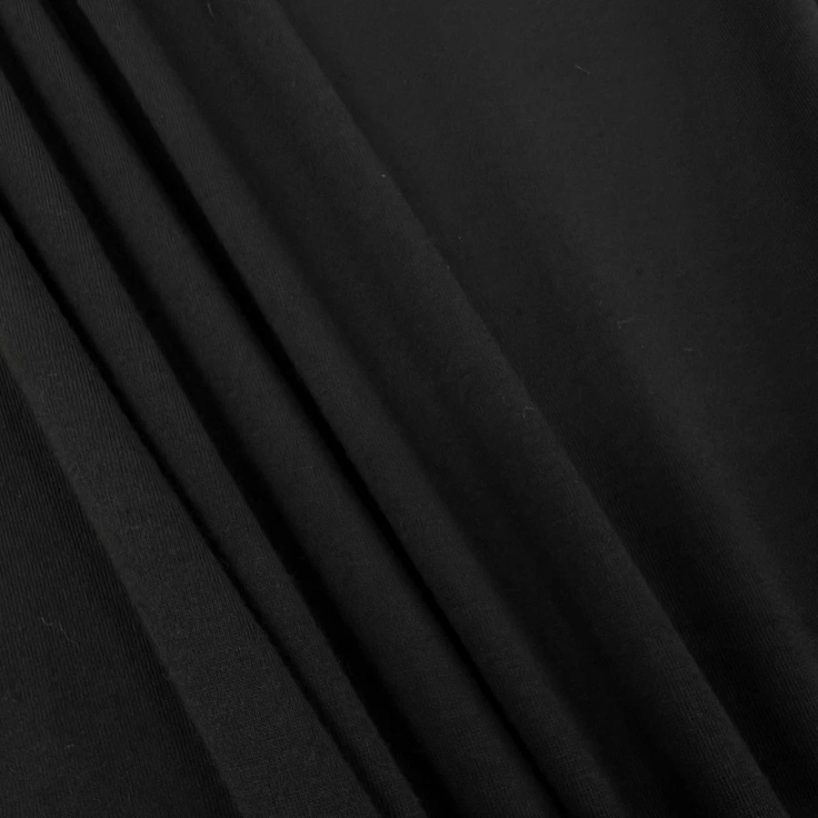 Our 180cm wide, interlock cotton jersey fabric in black is perfect for t-shirts, dressmaking and leggings!