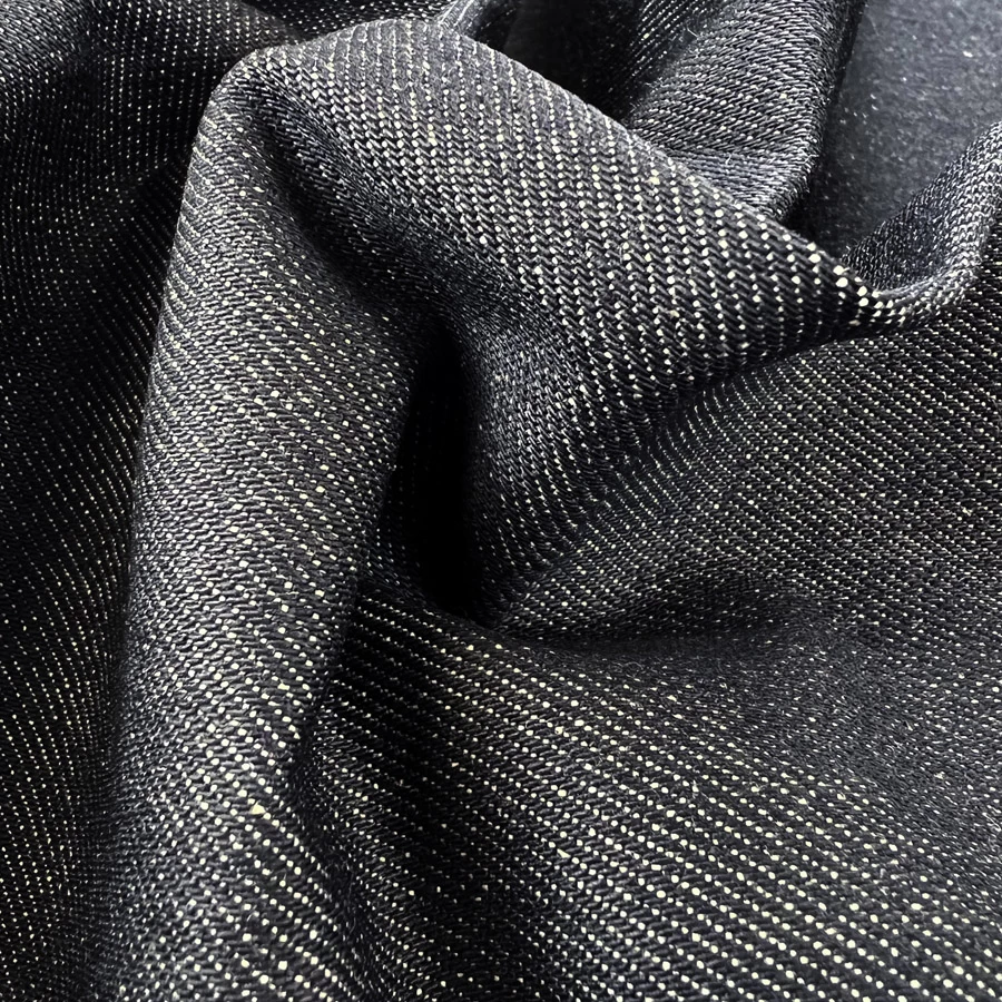 Superb quality 13.5oz red selvedge organic denim in washed black. At 80cm wide this is narrow cloth as it is woven on a shuttle less looms. This mean that a lot of care & goes into manufacturing of this fabric. It is a much slower process than automated shuttle looms.