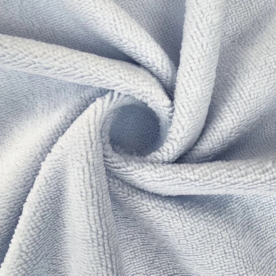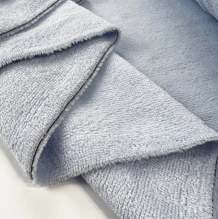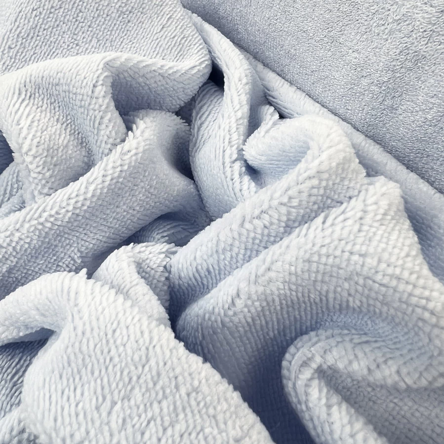 This super soft and luxurious terry towelling is made from a blend of cotton, polyester with 40% consisting of a viscose made from bamboo pulp. This fabric is environmentally conscious, the composition allows it to be warm yet breathable as well as absorbent. A great choice for towels of all sizes, and creating your own fancy towel dress robes that you find at those expensive hotels.