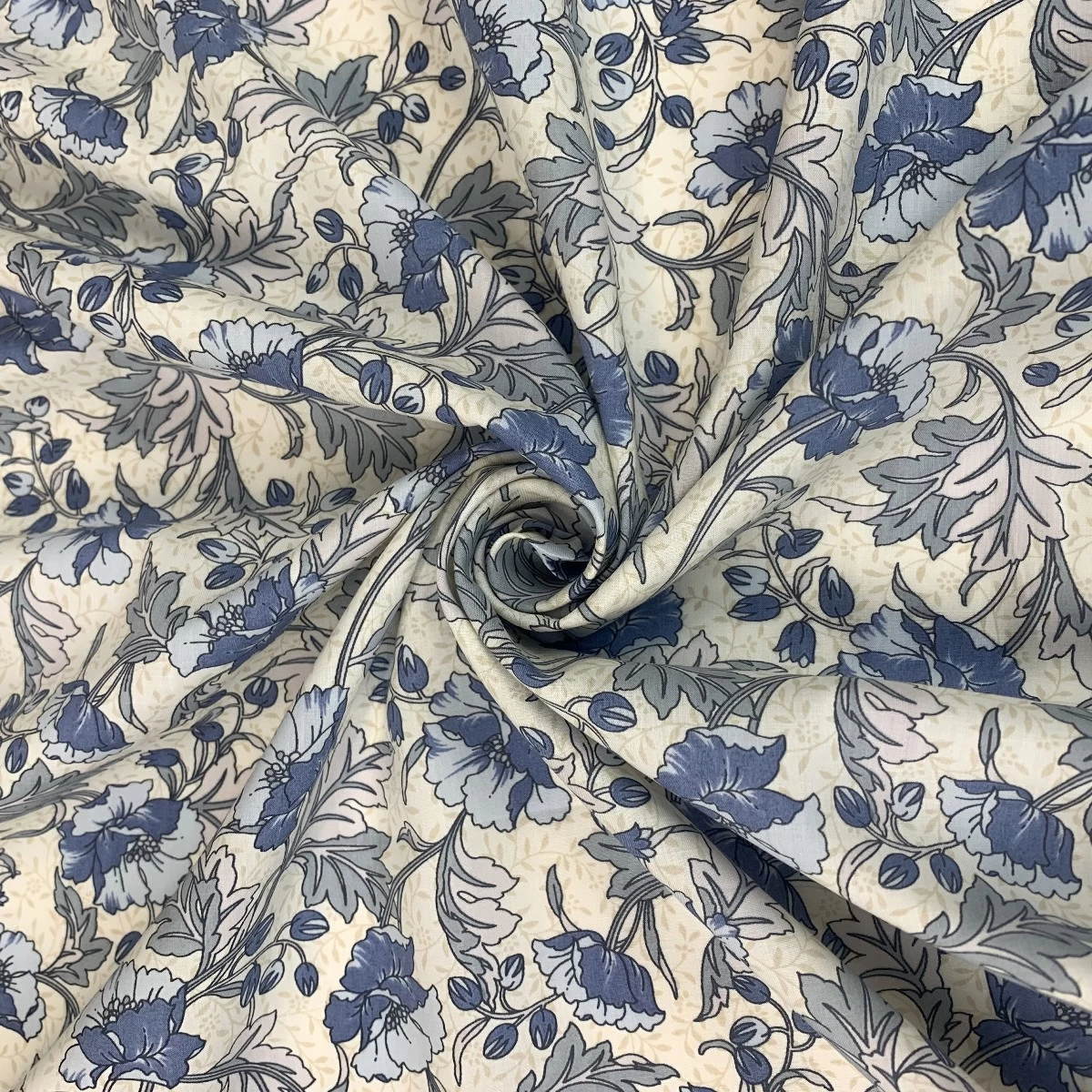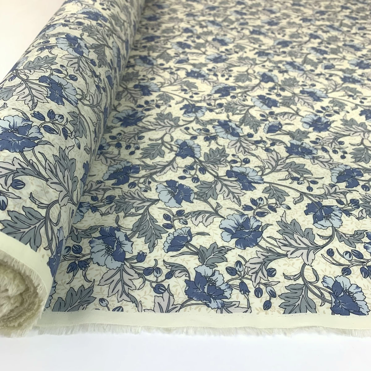 | Stunning Pima cotton lawn dress fabric in blue with a beautiful floral print on a cream background. Lightweight and breathable, densely woven cotton lawn fabric perfect for dresses and blouses, the ideal summer dress material. Also a wonderful fabric for quilting with. Cotton lawns do not get better than this, it feels like silk on your skin. | |
