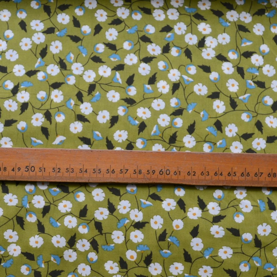 A pima cotton lawn of lovely quality, this pea green floral pattern coyly suggests a vintage style.