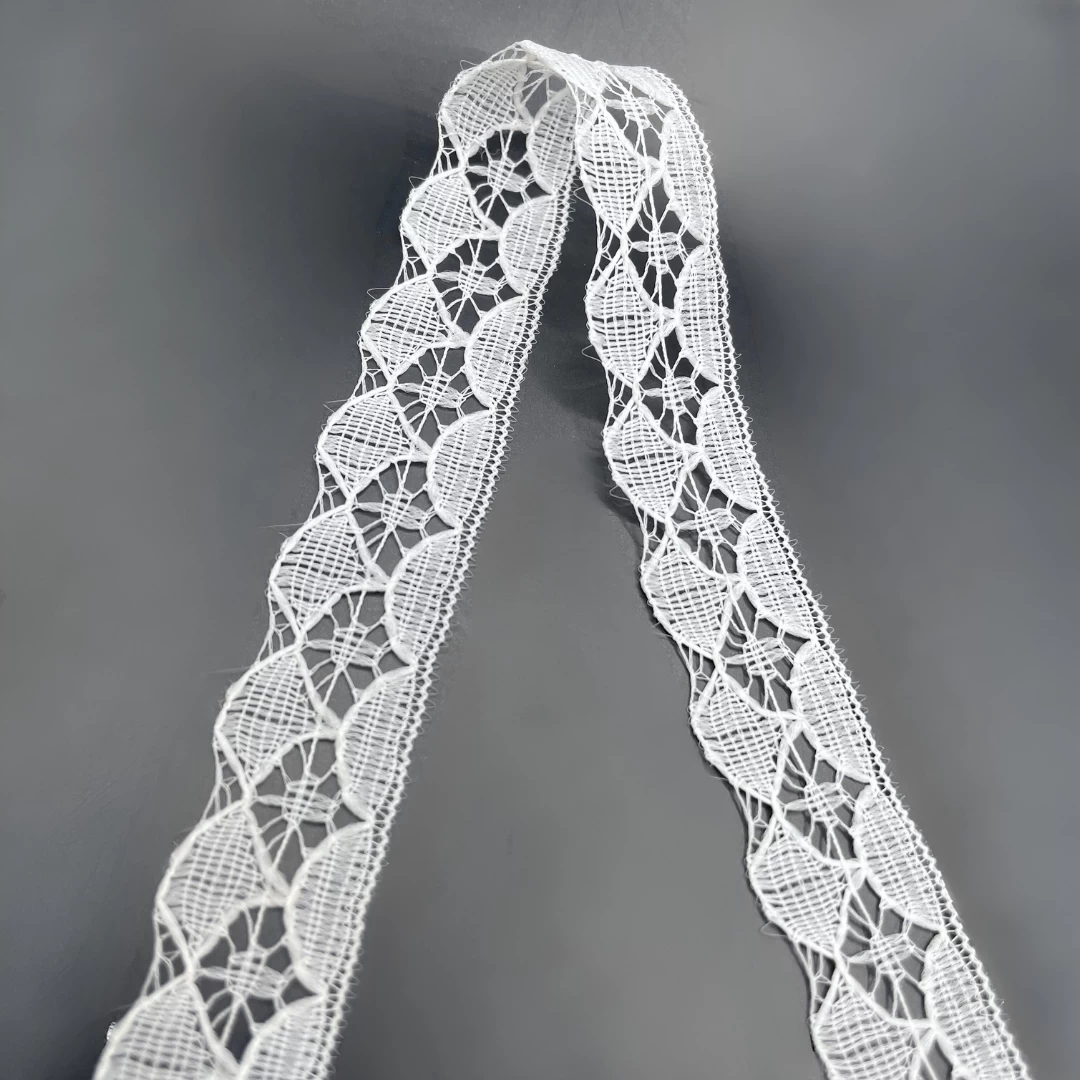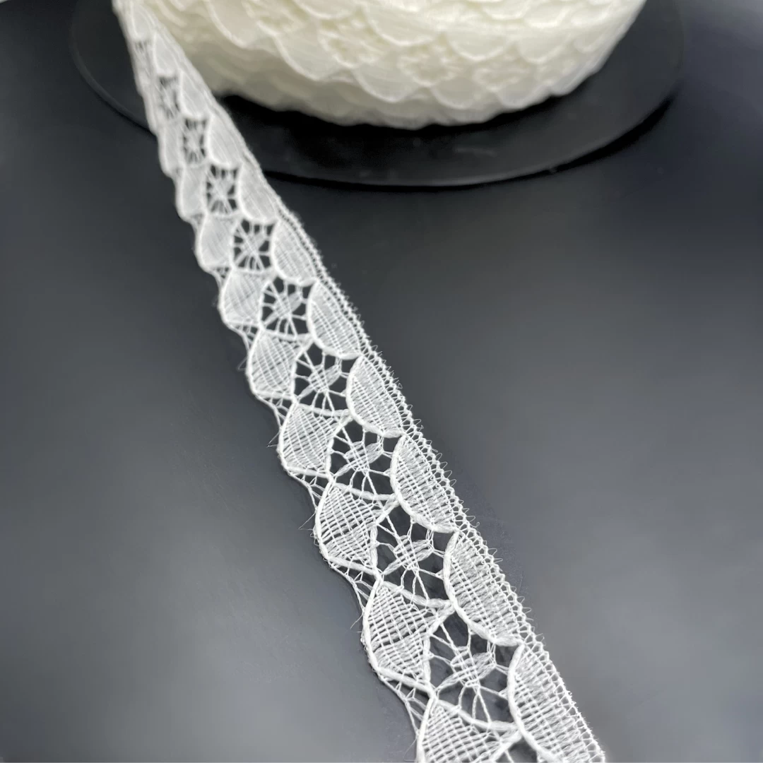 Elevate your designs with our exquisite 12mm wide flat lace trim. Crafted from polyester in soft white, perfect for all kinds of craft, dressmaking & sewing projects.