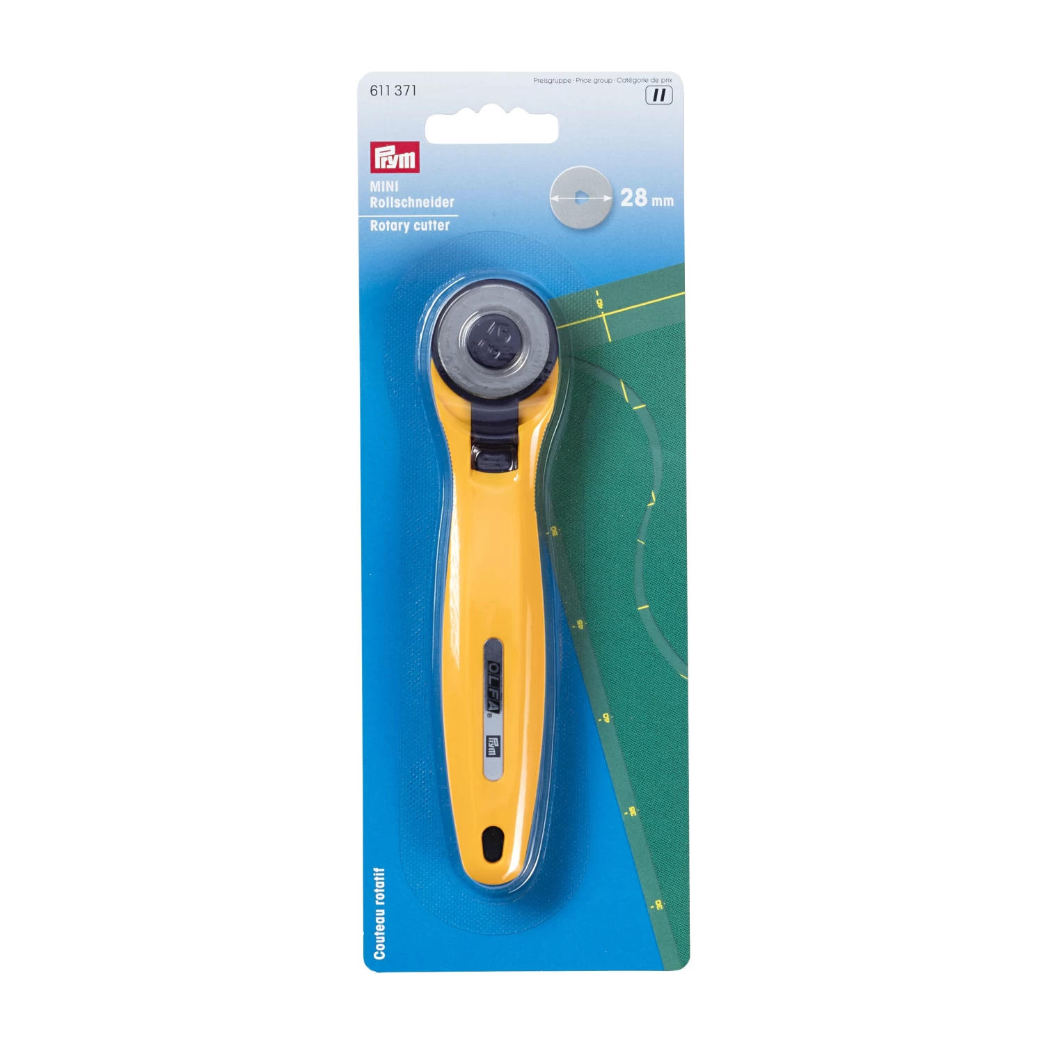 The Mini rotary cutter from Prym is a specially handy sewing aid, in particular for patchworkers. Its small blade with 28 mm diameter makes it ideal for curves and short distances on thin, soft materials.