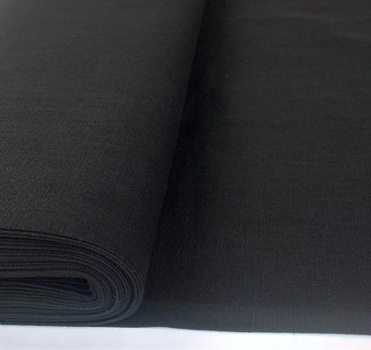 230gsm lovely black mid-weight washed linen fabric for jackets, dresses and shirts. Oeko-Tex Standard 100