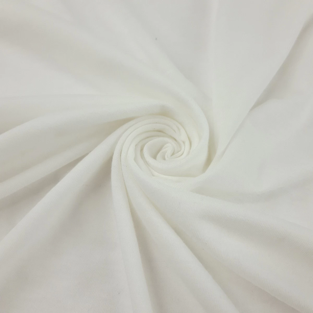 | Remnant (1.25m) – This item is non-returnable/non-refundable. 130cm wide, white 50% cotton, 50% polyester jersey fabric lovely and soft, fabulous for t-shirts. | |