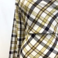Soft white and gold check linen viscose shirting fabric. Unique shirting fabric in a viscose linen mix. Breathable and soft next to your skin.