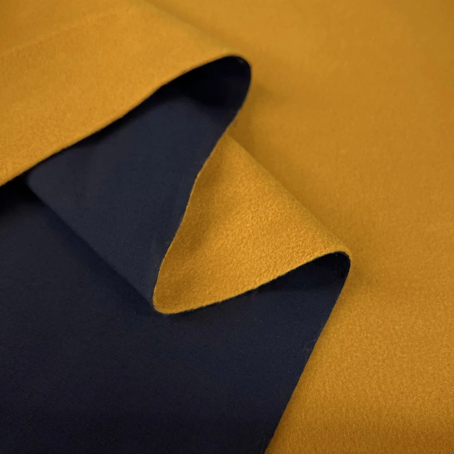 Crafted from high-quality polyester, this fabric offers exceptional durability, ensuring longevity for your creations. One side features a classic navy finish for a sleek look, while the reverse boasts a cosy mustard fleece lining, offering warmth and comfort on colder days.