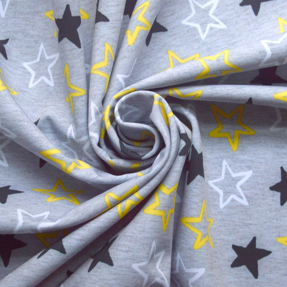 | Soft Shell jacketing fabric. Printed polyester with a micro-fleece backing. It comes in grey with a star print and a turquoise fleece backing. Now then, what do I think you’re going to make out of this? Well because of the microfleece backing it suggests lightweight jacket. Or possibly yodelling shorts, of course, I am joking. Made in a very expensive place for very expensive people. A very lovely material. | |