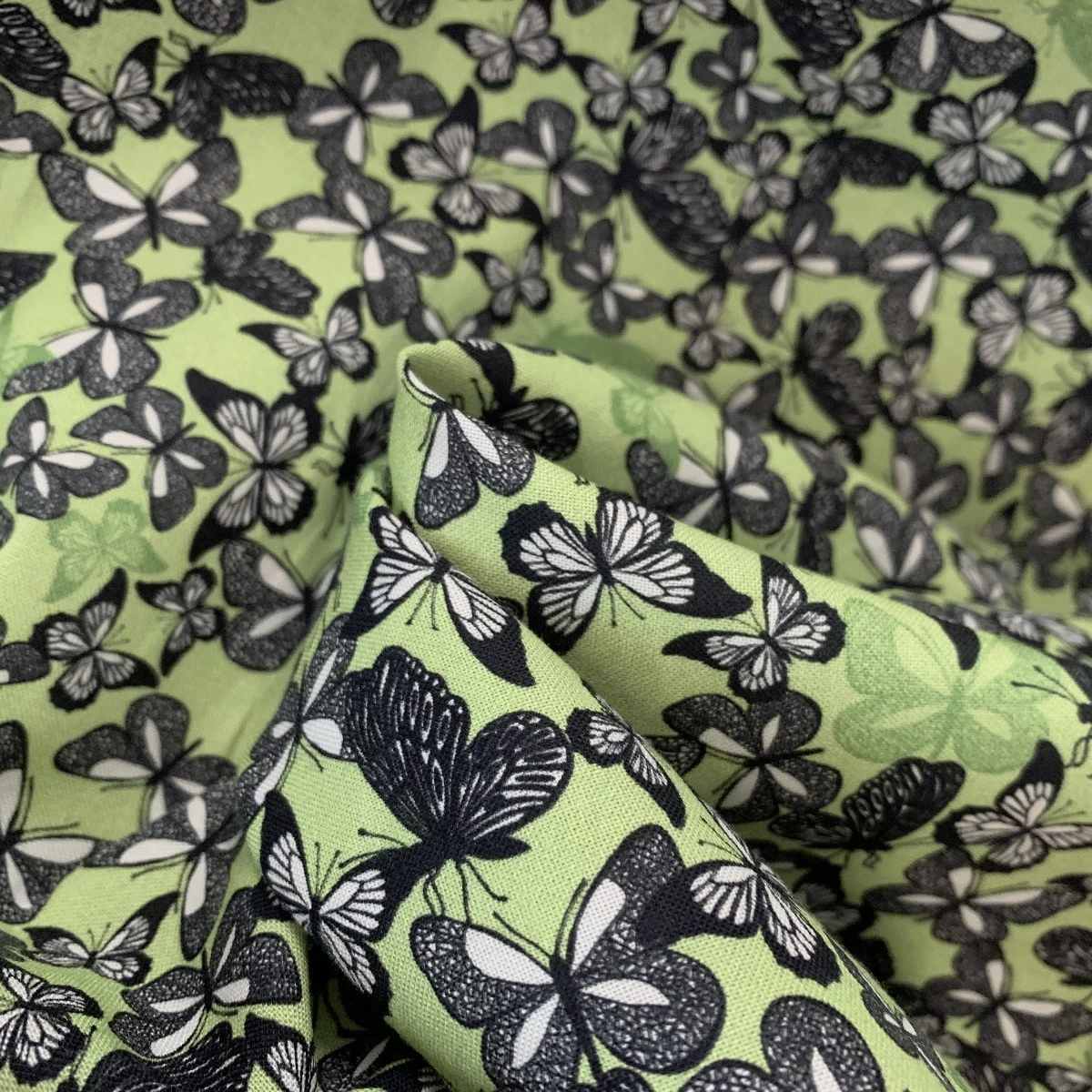 Measuring 112cm wide, the lime green background sets the perfect backdrop for the intricate black and white butterfly design, creating a striking contrast.