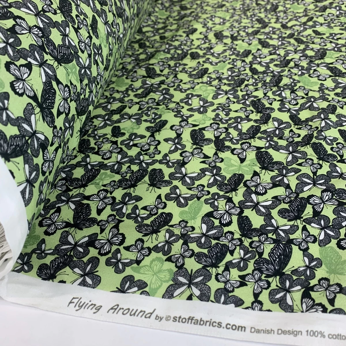 Flying Around by Stof Fabric Danish Design 100% Cotton 18-112-LIME (RRP £15)