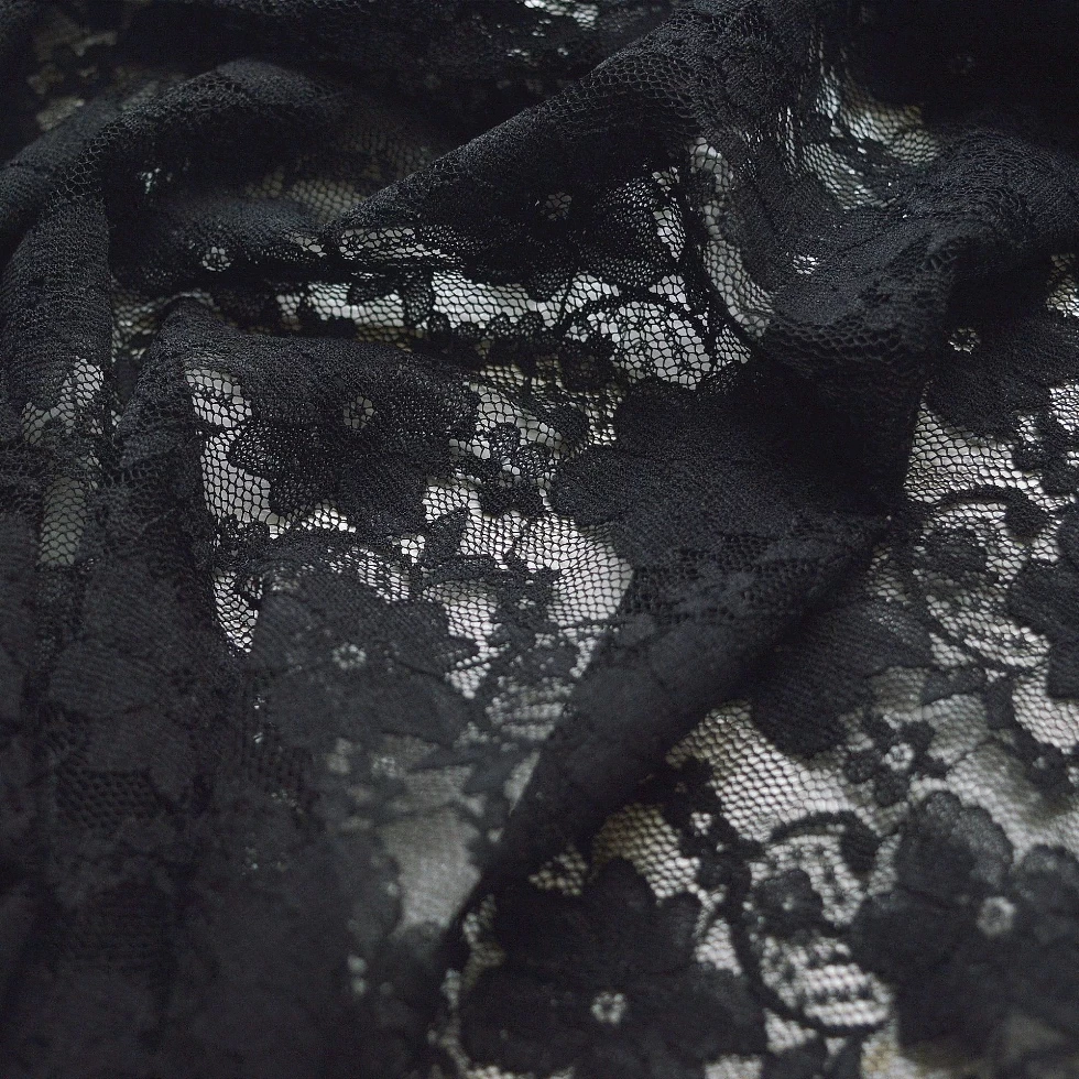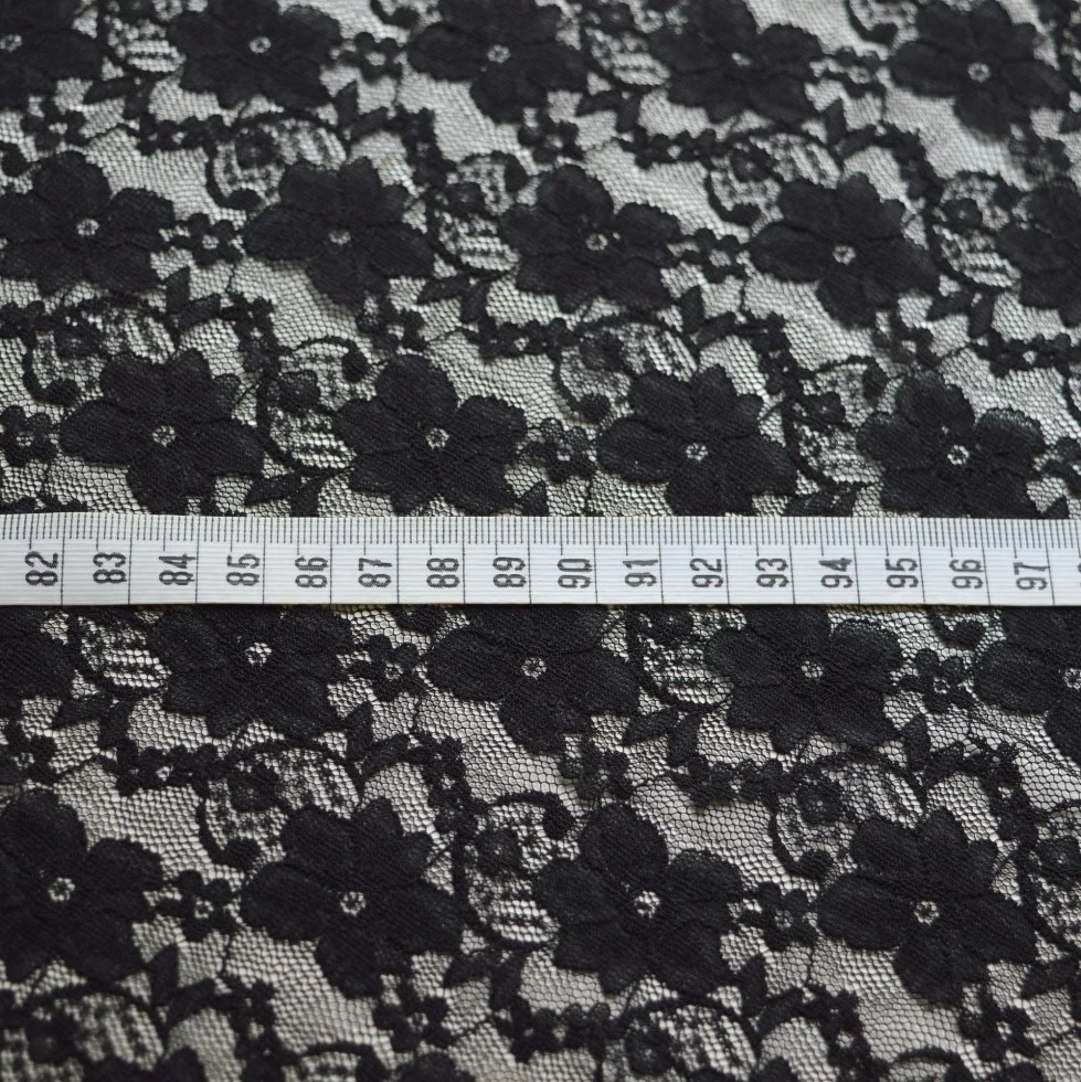 | 150cm wide floral polyester stretch lace for underwear and detailing. Lovely as a sleeve on a black dress or detailing on a satin camisole top. This can also be used as an overlay. | |