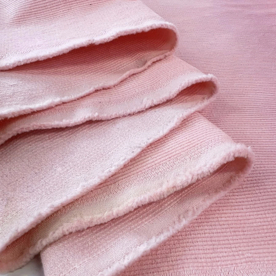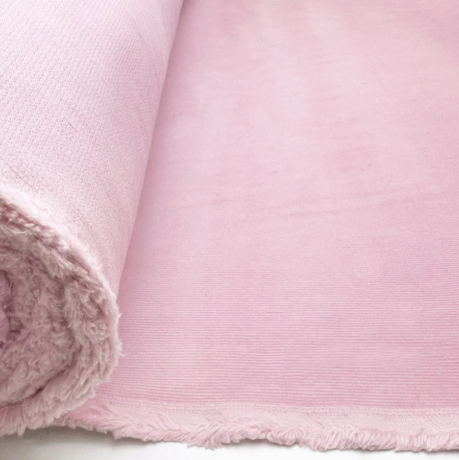 Very soft stretch velveteen 18 wale needlecord in pale pink.