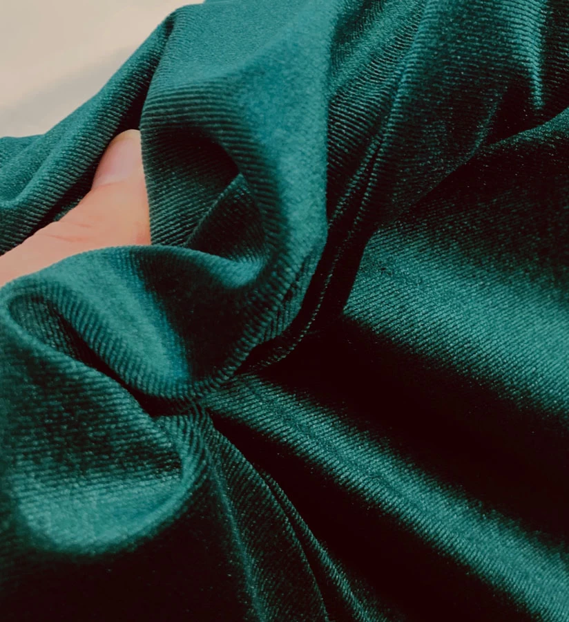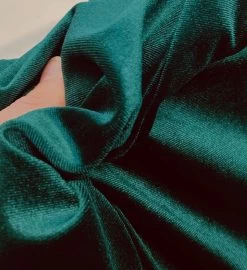 148cm wide, beautiful quality stretch velvet dress fabric in emerald green. A 4-way stretch knitted velour, this is especially good for evening wear.