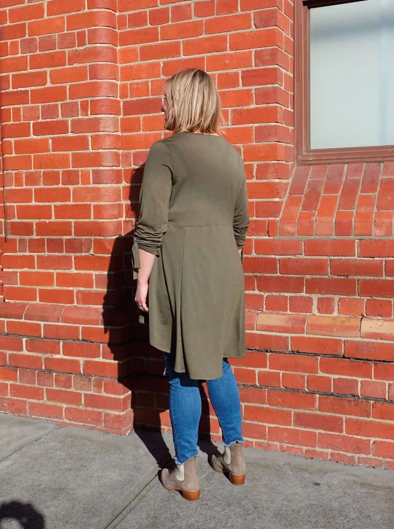 This easy-to-wear and easy-to-sew tunic features a swing back and hi-low hemline, perfect for any casual occasion. The optional tie on the sleeve adds a touch of style to this versatile garment.