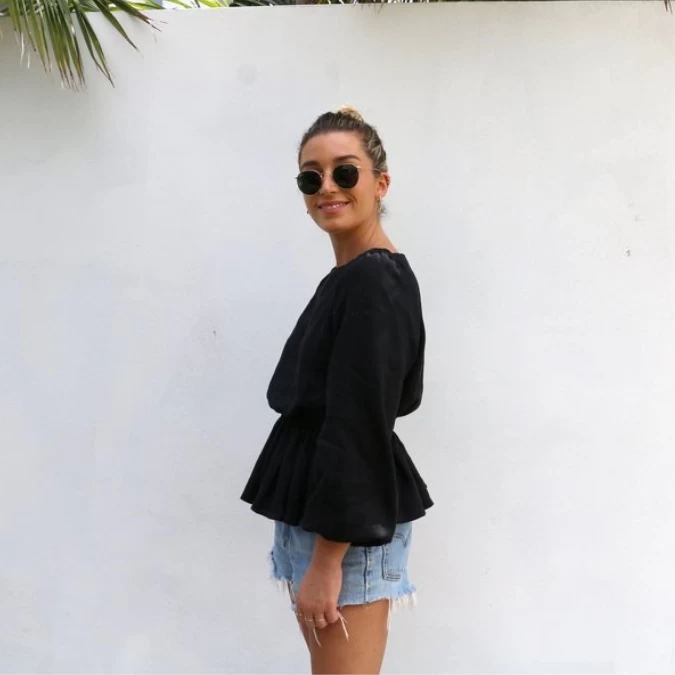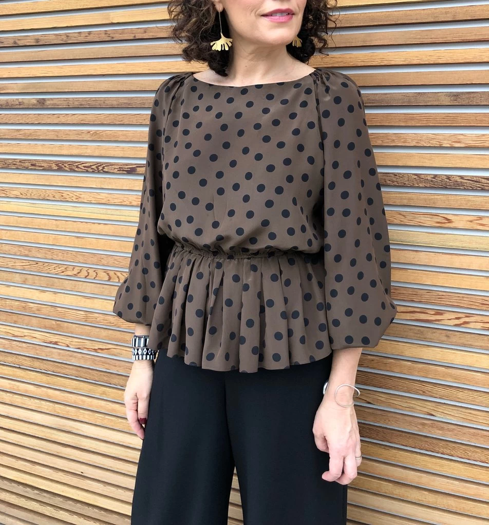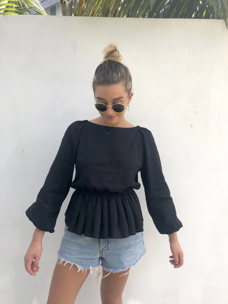 The Hilary Top is a charming peasant style blouse that flaunts a bloused bodice, pleated peplum, boat neckline, gathered waist, and sleeves with gathered wrists. This versatile top is a great addition to any wardrobe, pairing perfectly with pants, shorts, or skirts. Its timeless appeal and effortless elegance make it a wardrobe essential that can be dressed up or down for any occasion.