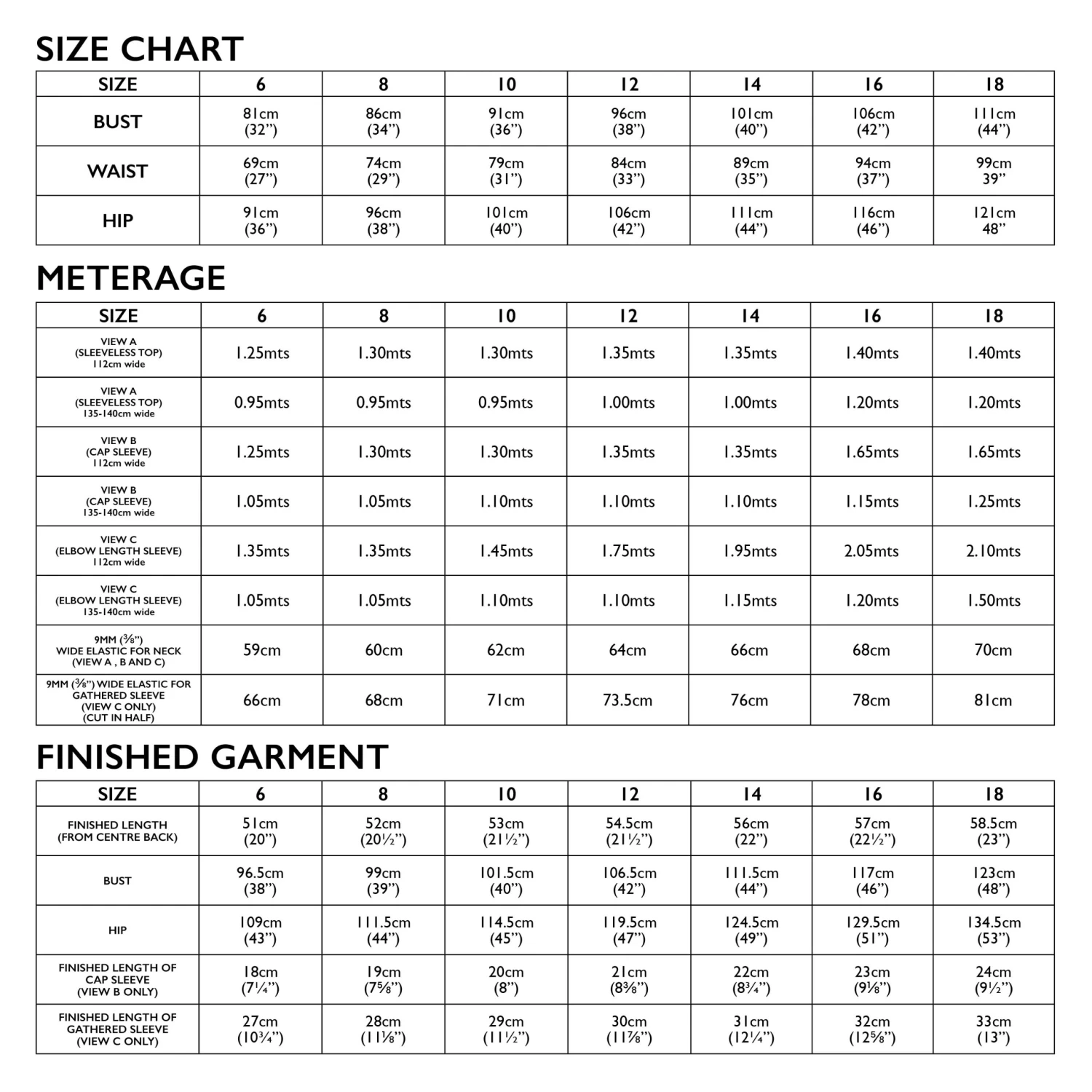 The Rae Top is a stylish and comfortable pull-on garment that boasts a relaxed fit and a wide, gathered neckline for added visual interest. The pattern offers three different variations to suit different styles and preferences. View A offers a sleek, sleeveless look with bound armholes, while View B features cap sleeves for a slightly more covered-up option.