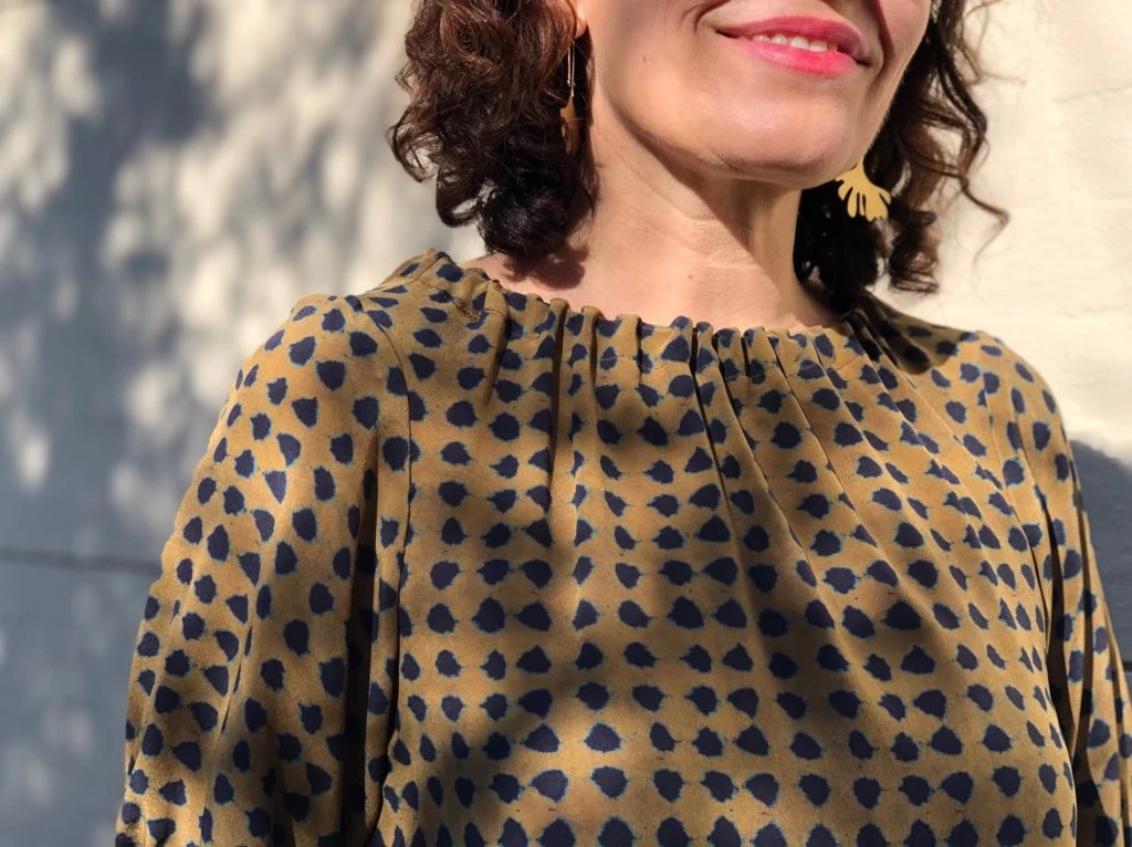 View C features soft, elbow-length sleeves with gathered hems, offering a touch of feminine elegance to the design. The Rae Top’s versatility makes it an excellent addition to any wardrobe, as it can be dressed up or down to suit any occasion. Whether paired with jeans for a casual look or worn with dress pants for a more formal event, the Rae Top is a perfect choice for any fashion-savvy individual.