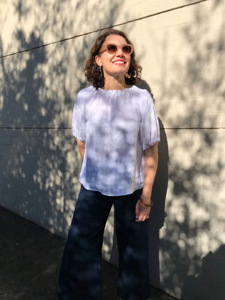 Linen, cotton poplin, light-weight wool, light-weight denim, silk, and viscose.