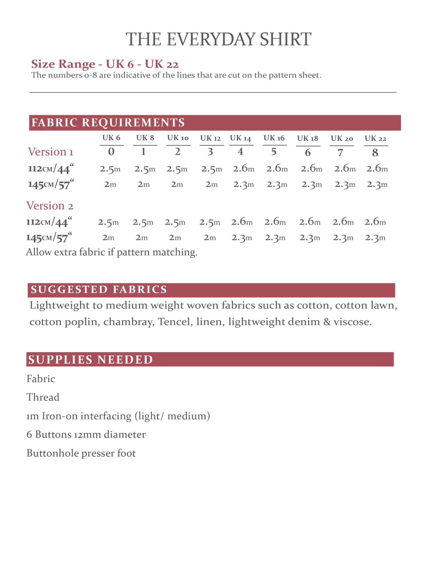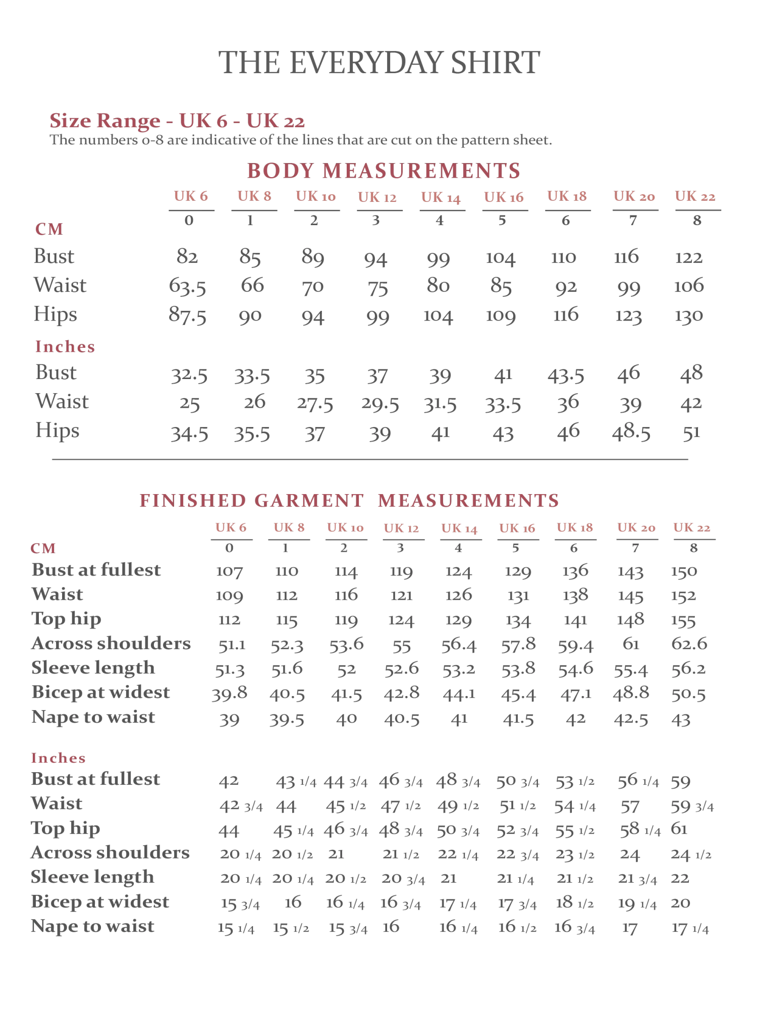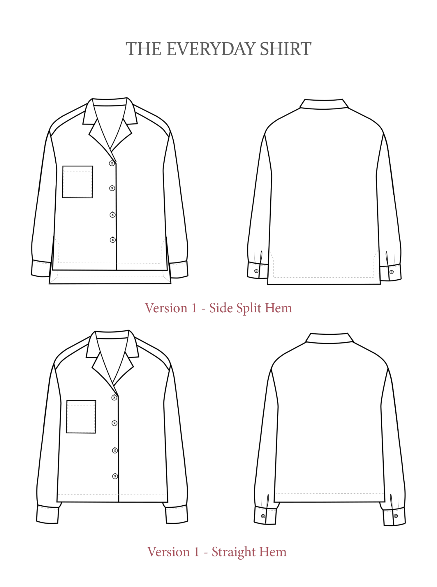 Discover the everyday shirt sewing pattern: The essential piece for every occasion. This versatile design combines a relaxed fit with an open collar, dropped sleeves, and cuff detail. With a mitred split hem offering contrast top stitching options, or a straight hem for a boxy silhouette, unleash your creativity.