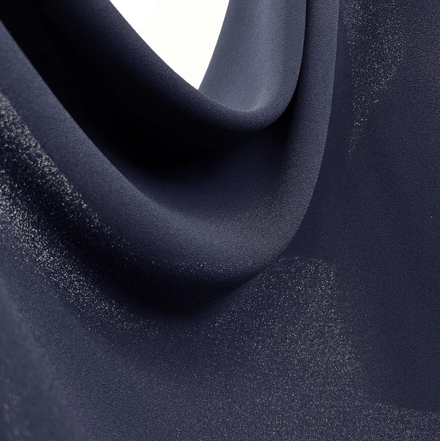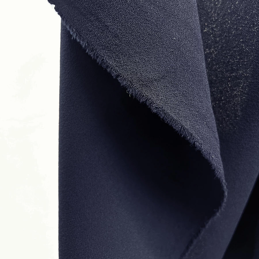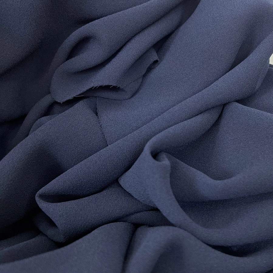 This 155cm wide exquisite triple crepe dress fabric is crafted from high-quality polyester in a navy blue shade. Triple crepe is renowned for its exceptional weight and drape, which give garments made with it an unparalleled elegance and sophistication.